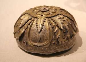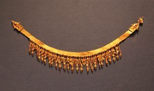 This golden ornament is comprised of a wide array of small chains, links, and designs. Image © Caroline Cervera. Hellenistic jewelry.